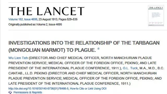 1913 年,他整理的相关文章发布在了医学顶级杂志柳叶刀 Lancet 上,成为了中国历史上首位在国际顶级学术期刊上发表文章的人。