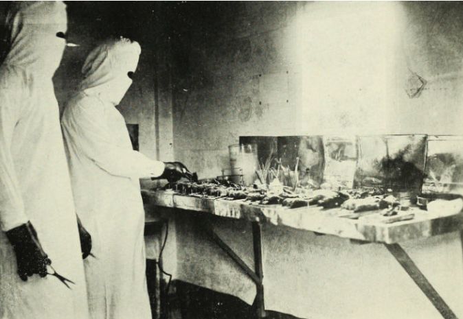 伍连德做的第一件事,就是发明了棉纱口罩,采用当地的普通外科纱布制成,佩戴方法和如今流行的主流口罩基本相同。