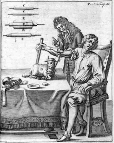 直到1616年,英国医学家哈维首次发现血液在体内是流动的,1667年,法国医生德尼斯成功用鹅毛管将羊血输送给一位患病的男孩,成为了首位人体输血成功者,也是首位输动物血没有死掉的勇士。