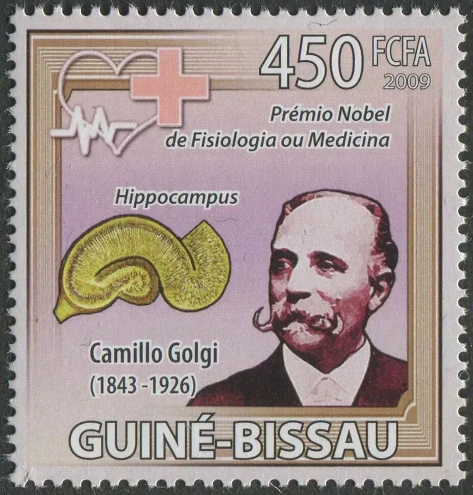 几内亚比绍(2009):1906年诺贝尔生理学或医学奖获得者高尔基,高尔基头像以及他亲手绘制的海马结构示意图